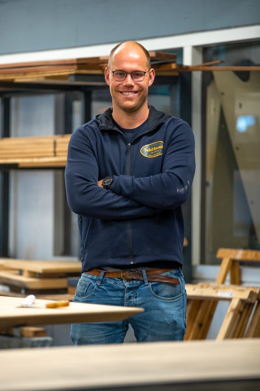 Een ware professional. Rob is bij Tafelsmaak de bron van creativiteit. Als afgestudeerd Meubelmaker heeft hij een aanstekelijke passie voor hout. Het vervaardigen van producten die generaties meegaan, spreekt hem enorm aan. Of het nu tafelbladen, tv-meubels of andere artistieke creaties zijn, Rob is er altijd voor te porren. Op maandagochtend standaard een schorre stem, want Rob is een toegewijde FC Groningen-fan. Geen wedstrijd gaat aan hem voorbij.
