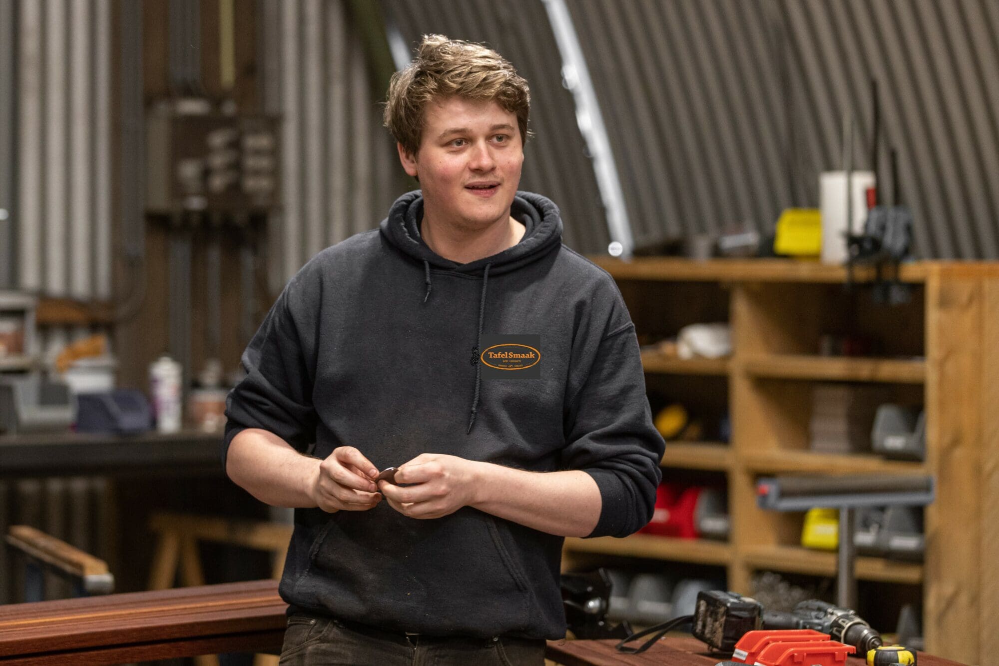 Een talentvolle techneut. Daniel brengt bij Tafelsmaak zijn passie tot leven. Hij sleutels niet alleen aan tafels, maar ook aan brommers, auto’s en boten. Zijn vaardigheden blinken uit in elk project dat hij aanraakt. Met een oog voor precisie en detail, geeft hij vorm aan prachtige constructies. Daniel heeft al vele projecten met zijn eigen handen vormgegeven. Zijn werk is een uiting van liefde voor ambacht en vakmanschap. Buiten zijn werk staat hij zijn mannetje, hij was zelfs tweede bij het NK Bowlen!
