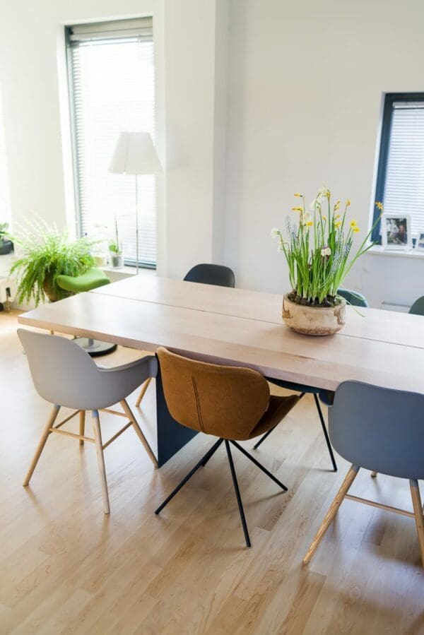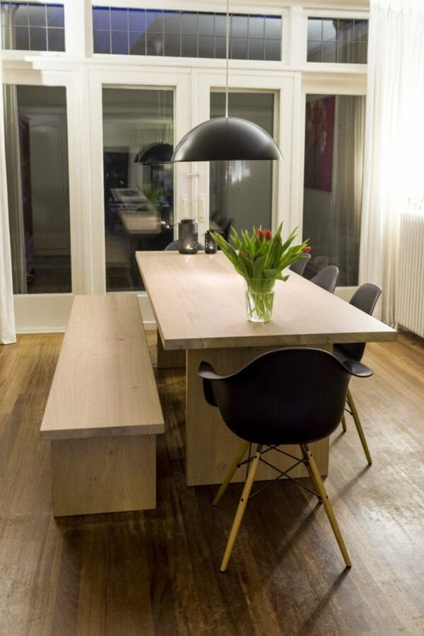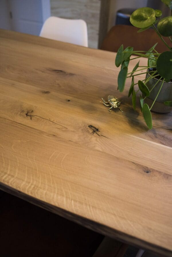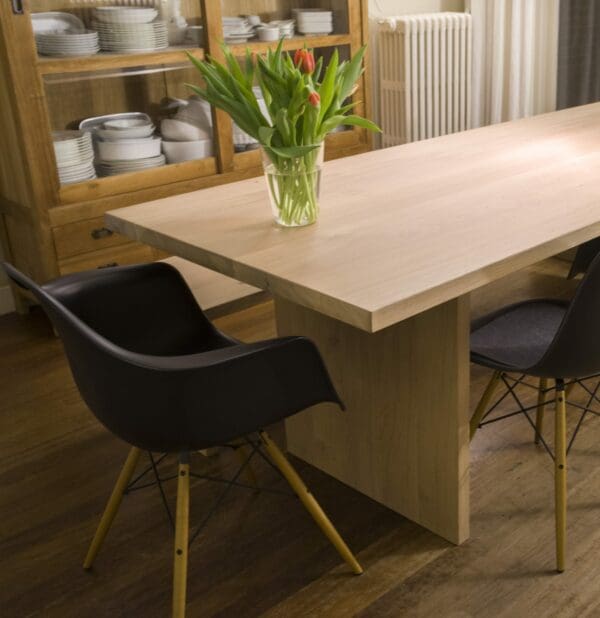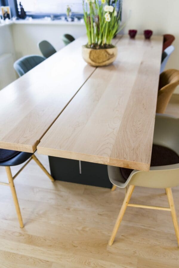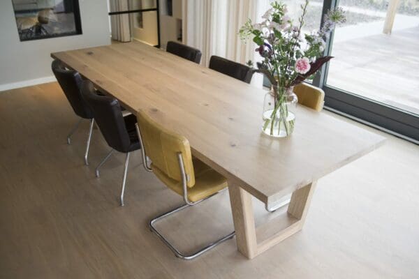- Voor de met 3-componenten geoliede én gelakte tafelbladen is in het dagelijkse onderhoud afnemen met een droge doek voldoende. Om vlekken/kringen te verwijderen is een vochtige lauwe doek voldoende. Zie de pagina onderhoud voor meer informatie.