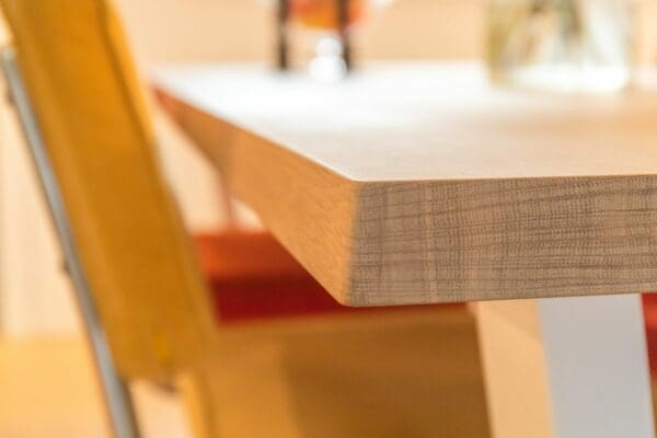 - De tafel is optimaal beschermd. Voor de met 3-componenten geoliede én 2-componenten gelakte tafelbladen is in het dagelijkse onderhoud afnemen met een droge doek voldoende. Om vlekken/kringen te verwijderen is een vochtige lauwe doek voldoende. Zie de pagina onderhoud voor meer informatie.