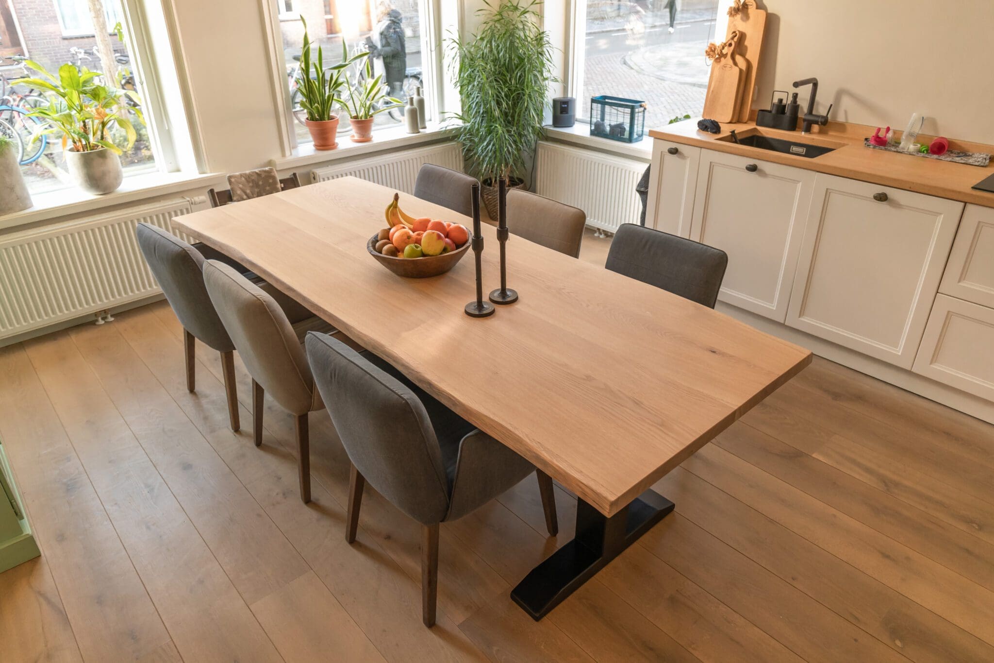 Onze favoriete ingrediënten voor een eettafel zijn stiekem hout en staal, al beseffen we ons maar al te goed dat iedereen een ander idee heeft over de perfecte tafel. Er zijn veel dingen waar je op kunt letten tijdens het samenstellen en op maat laten maken van een eettafel. Bij Tafelsmaak helpen we je graag verder om de perfecte tafel te vinden die past bij jouw woonsituatie en persoonlijke smaak.
