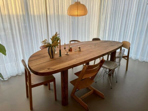 - Voor de met 3-componenten geoliede én 2-componentne gelakte tafelbladen is in het dagelijkse onderhoud afnemen met een droge doek voldoende. Om vlekken/kringen te verwijderen is een vochtige lauwe doek voldoende. Zie de pagina onderhoud voor meer informatie.
