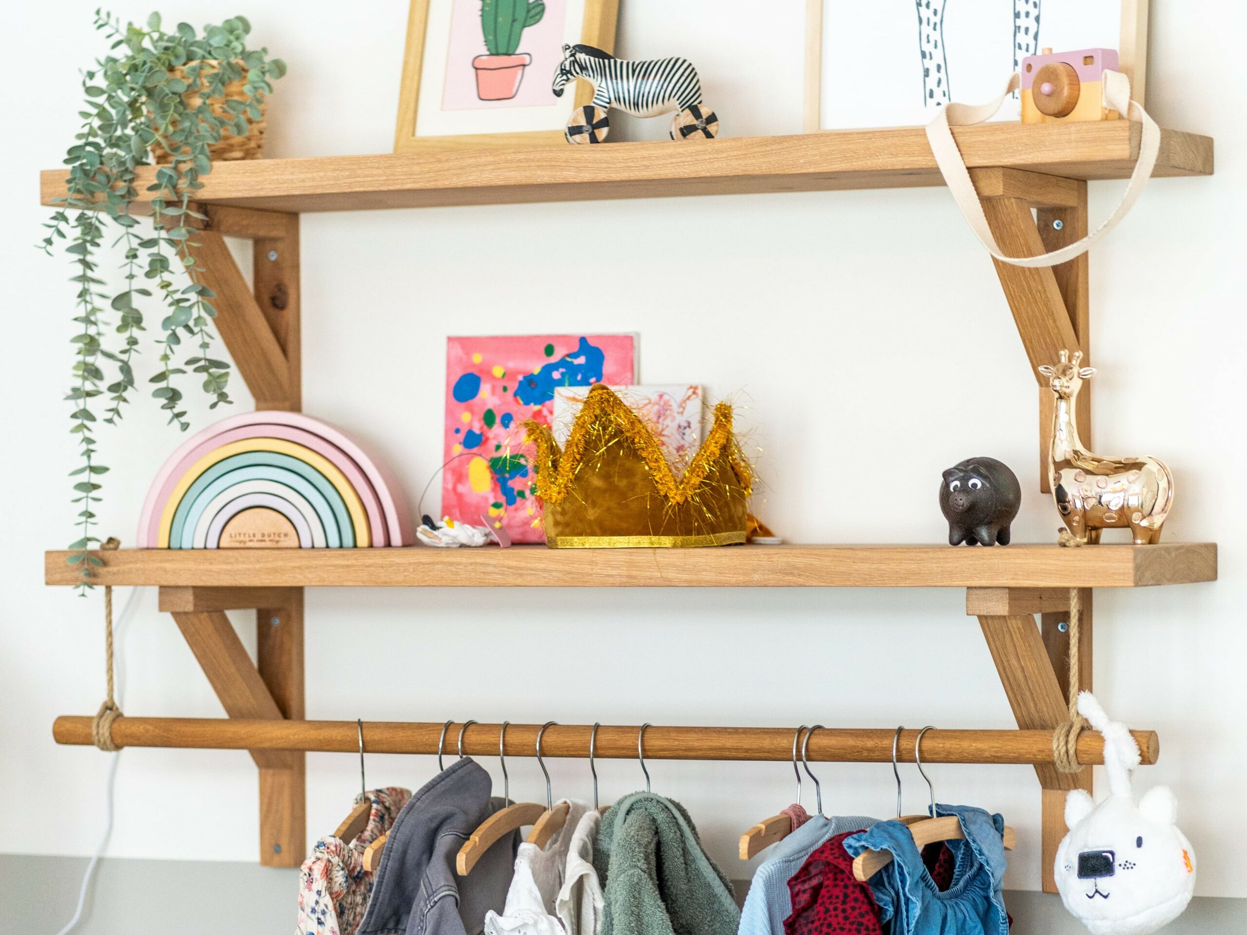 - Dit is een wandplank met massief houten plankdragers. Hierdoor kan de plank zwaar worden belast.