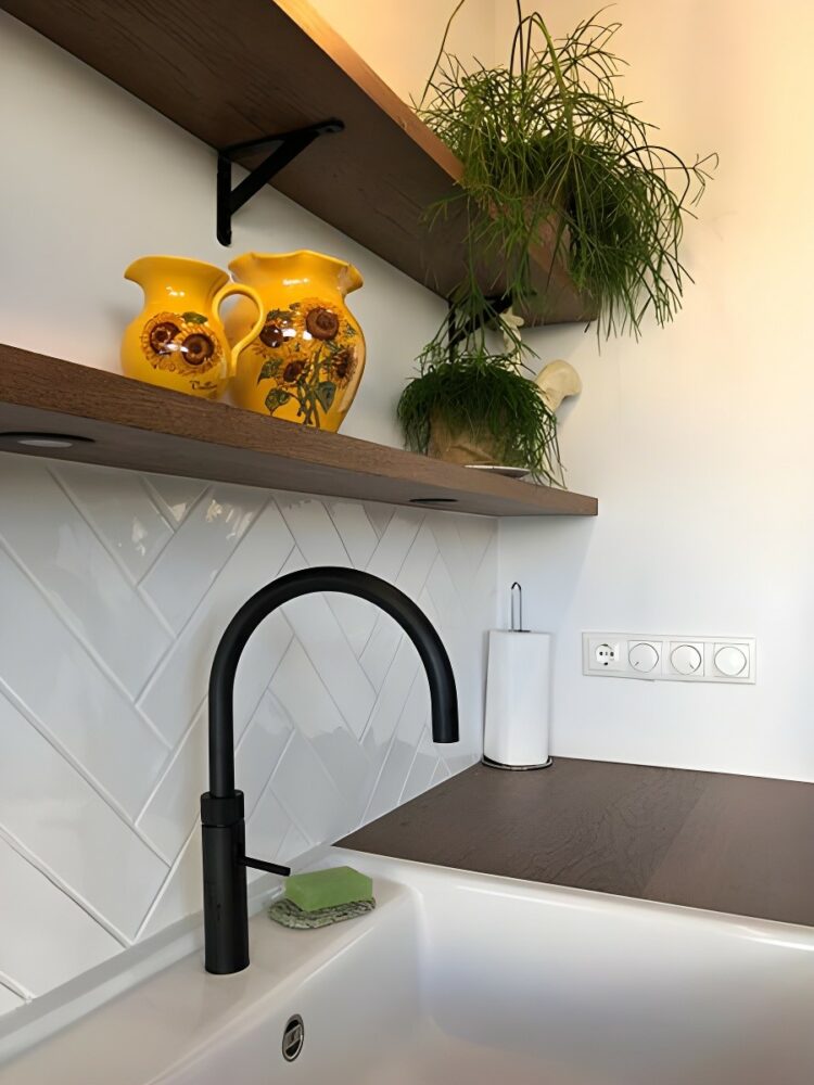 Doordat we alles zelf ontwerpen en maken sluit elk detail naadloos op elkaar aan: de profilering, de verlichting in de wandplanken, het werkblad en de kastlijnen. De klant was zeer tevreden met het eindresultaat en vooral met de rust en samenhang die de keuken uitstraalt.